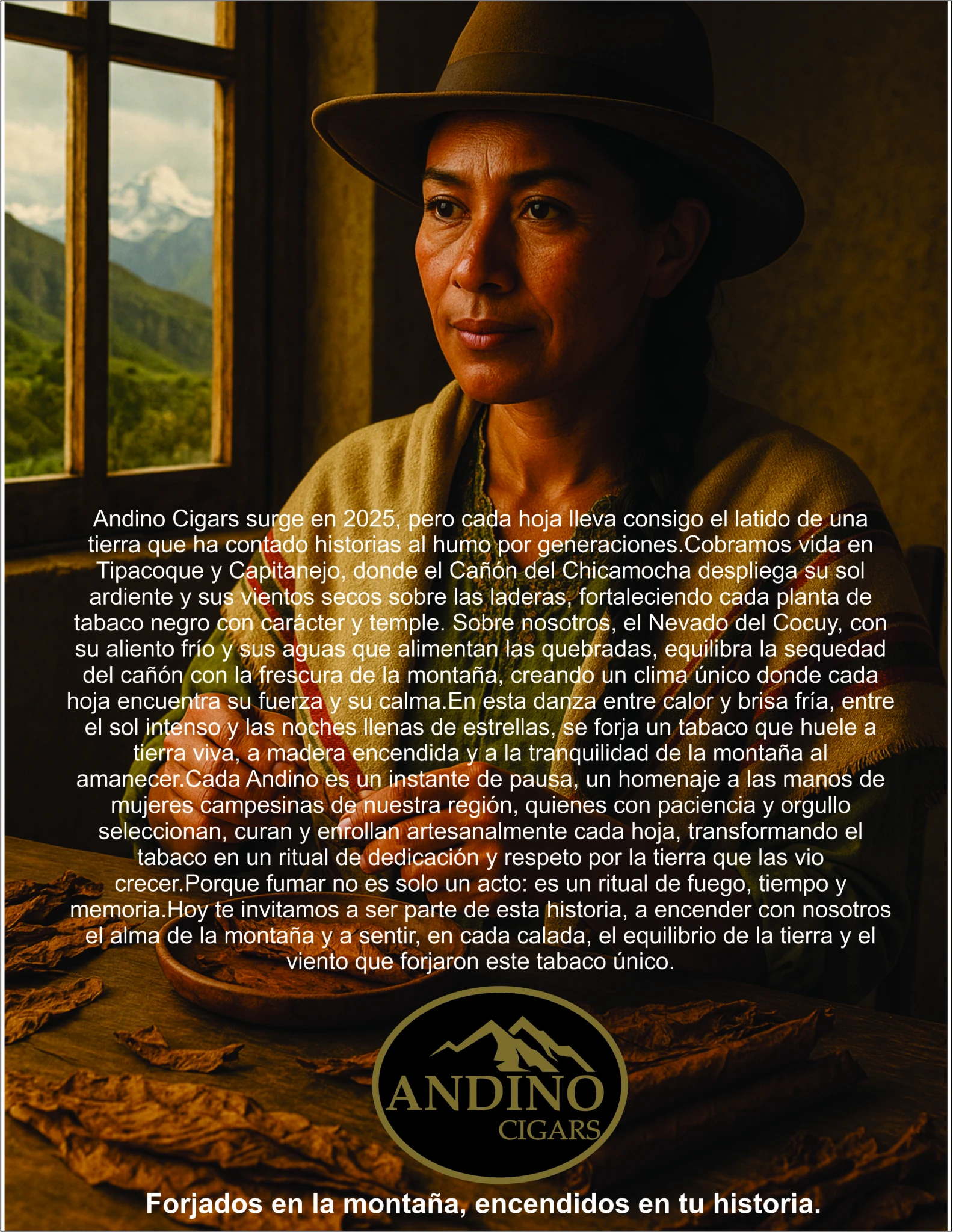 Una marca joven que honra siglos de tradición tabacalera colombiana, con un enfoque en la calidad artesanal y la autenticidad de su origen de montaña